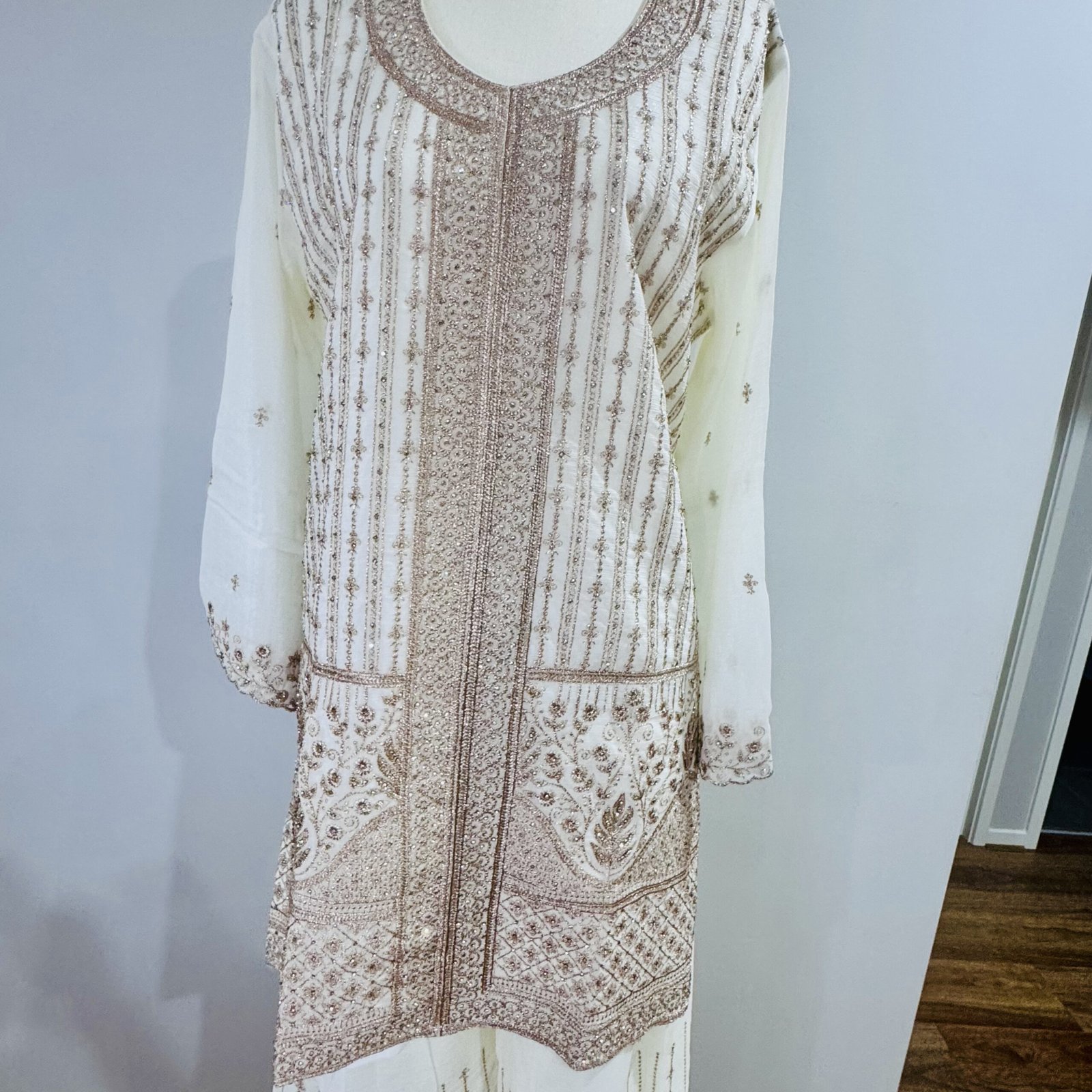 Women searching for Punjabi suits Australia or Pakistani suits Melbourne will love the soft colour palette and elegant handcrafted design.