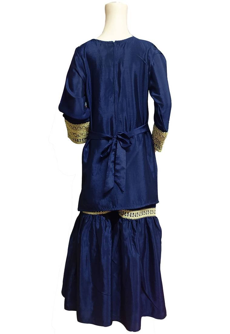 Bring graceful festive style to your little one’s wardrobe with this elegant Kids Navy Blue Sharara Suit Set from Punjabi Threads. Designed for girls who love classic ethnic fashion, this beautiful outfit features a rich navy blue tone with fine golden embroidery details that create a premium party wear look. The set is perfect for birthdays, festive events, family gatherings, weddings, cultural functions and special celebrations across Australia.