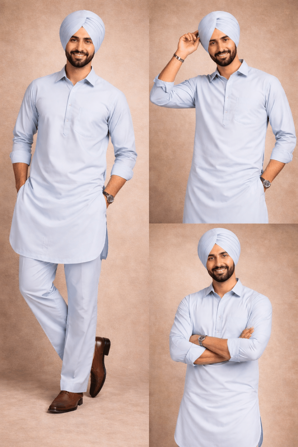 Pair with a matching or contrast turban for a complete Punjabi look