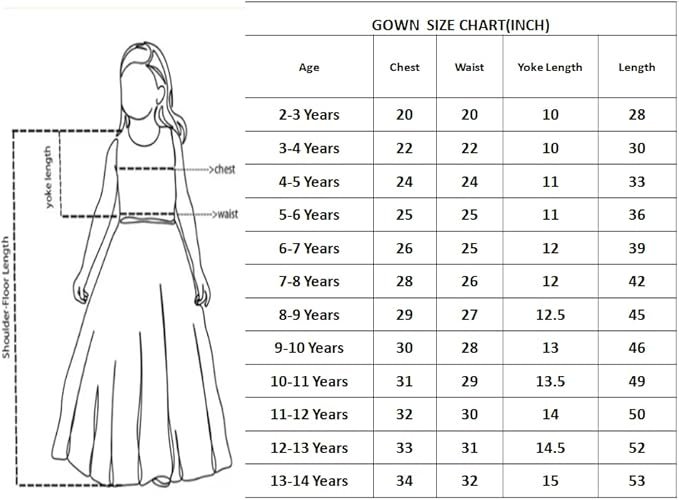 Punjabi Threads focuses on practical fashion for families in Melbourne and Australia, so this gown is not only attractive but also wearable for long hours. The silhouette allows movement and comfort for active kids, while the overall construction gives a polished appearance that parents appreciate for special events. The product is available in sizes 28, 30, 32 and 34, helping you choose the most suitable fit based on your child’s measurements and age range.