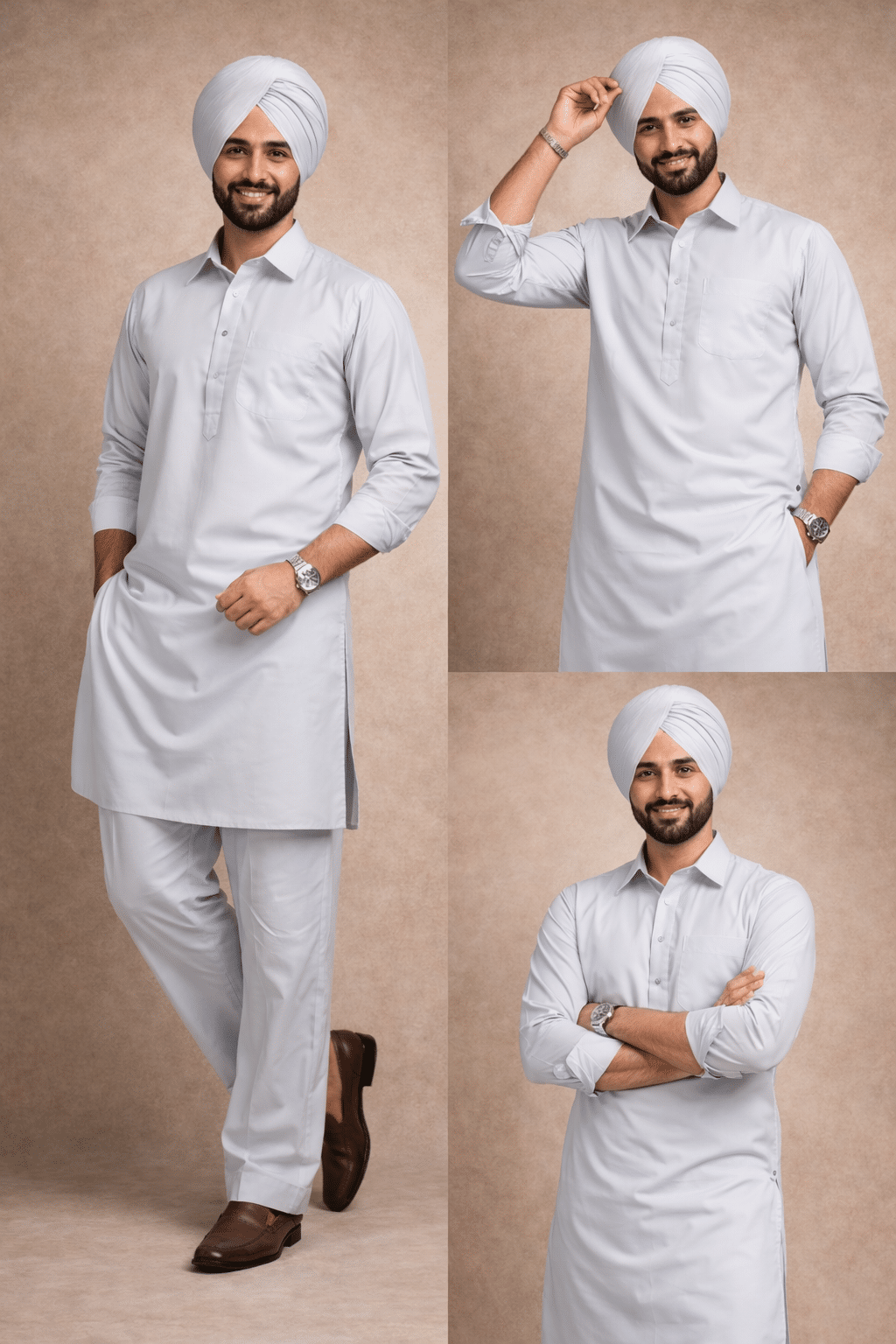 The Beige Punjabi Kurta Pajama for Men represents heritage, pride, and timeless elegance that never goes out of style. Thoughtfully designed for men who appreciate understated luxury blended with authentic Punjabi tradition, this ethnic ensemble delivers refined style with modern comfort.
