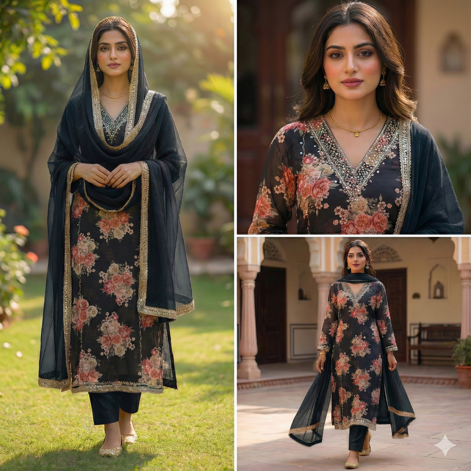๐ Includes: Kurta, Dupatta, Bottom Fabric (3-piece unstitched set)
