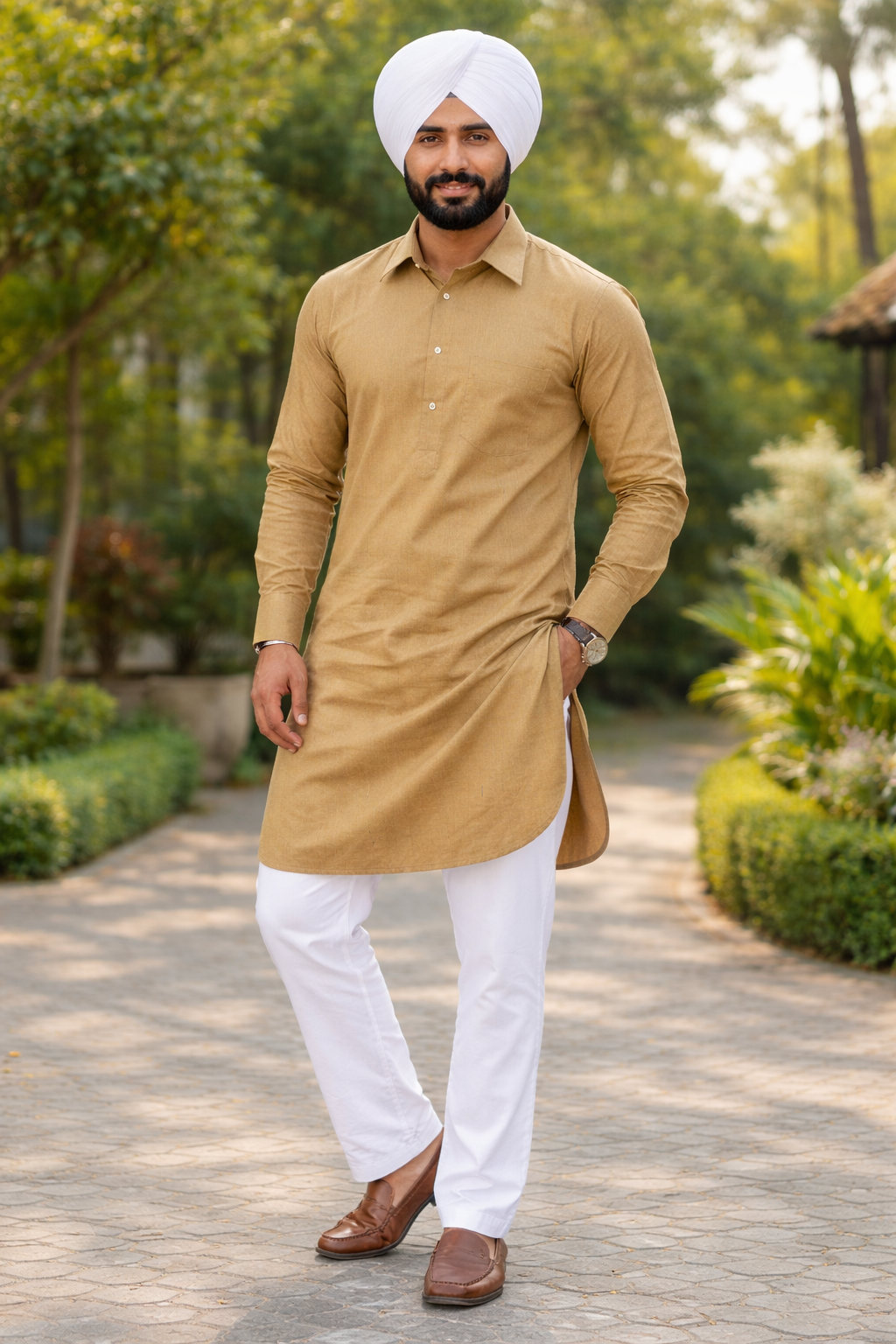Pair with a matching or contrast turban for a complete Punjabi look