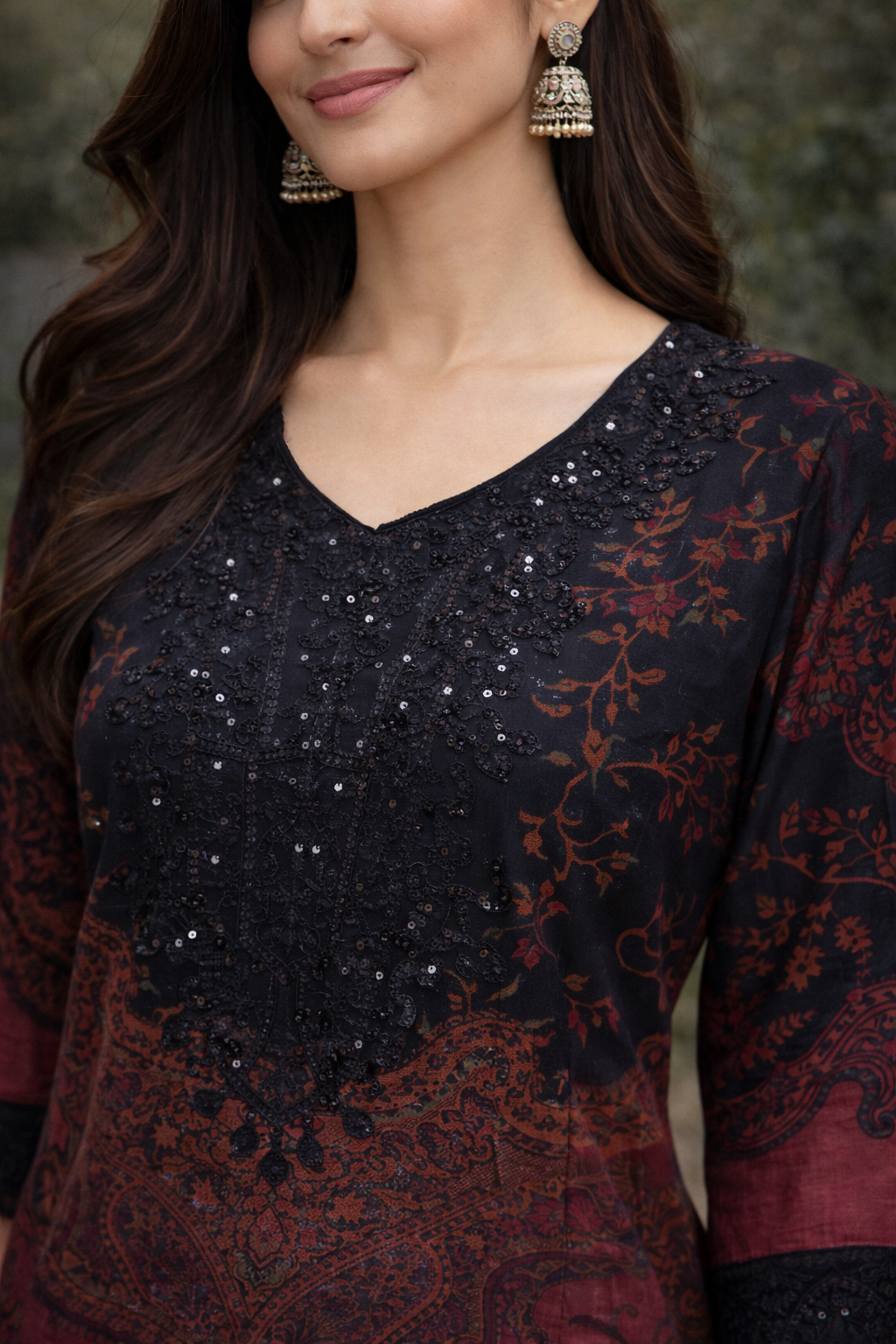 ✔ Intricate embroidered front neck with bead detailing