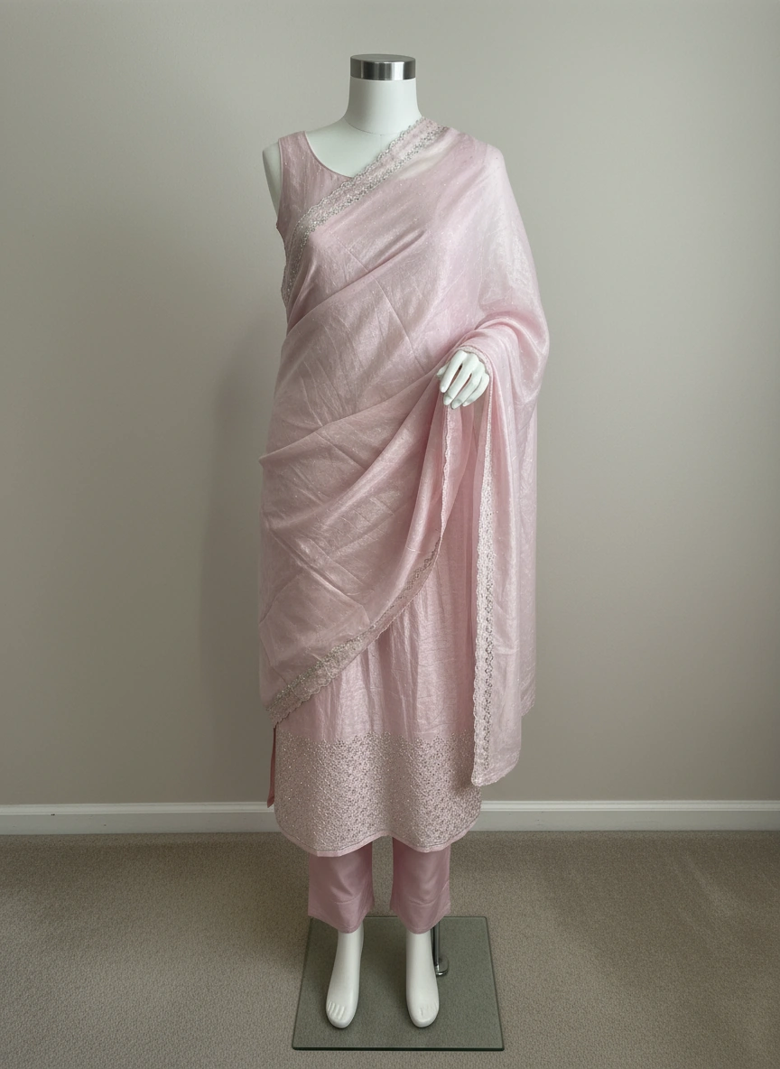 Shimmer Crush – Blush Pink Embroidered Suit Set | Punjabi Threads – Suits & Stitches